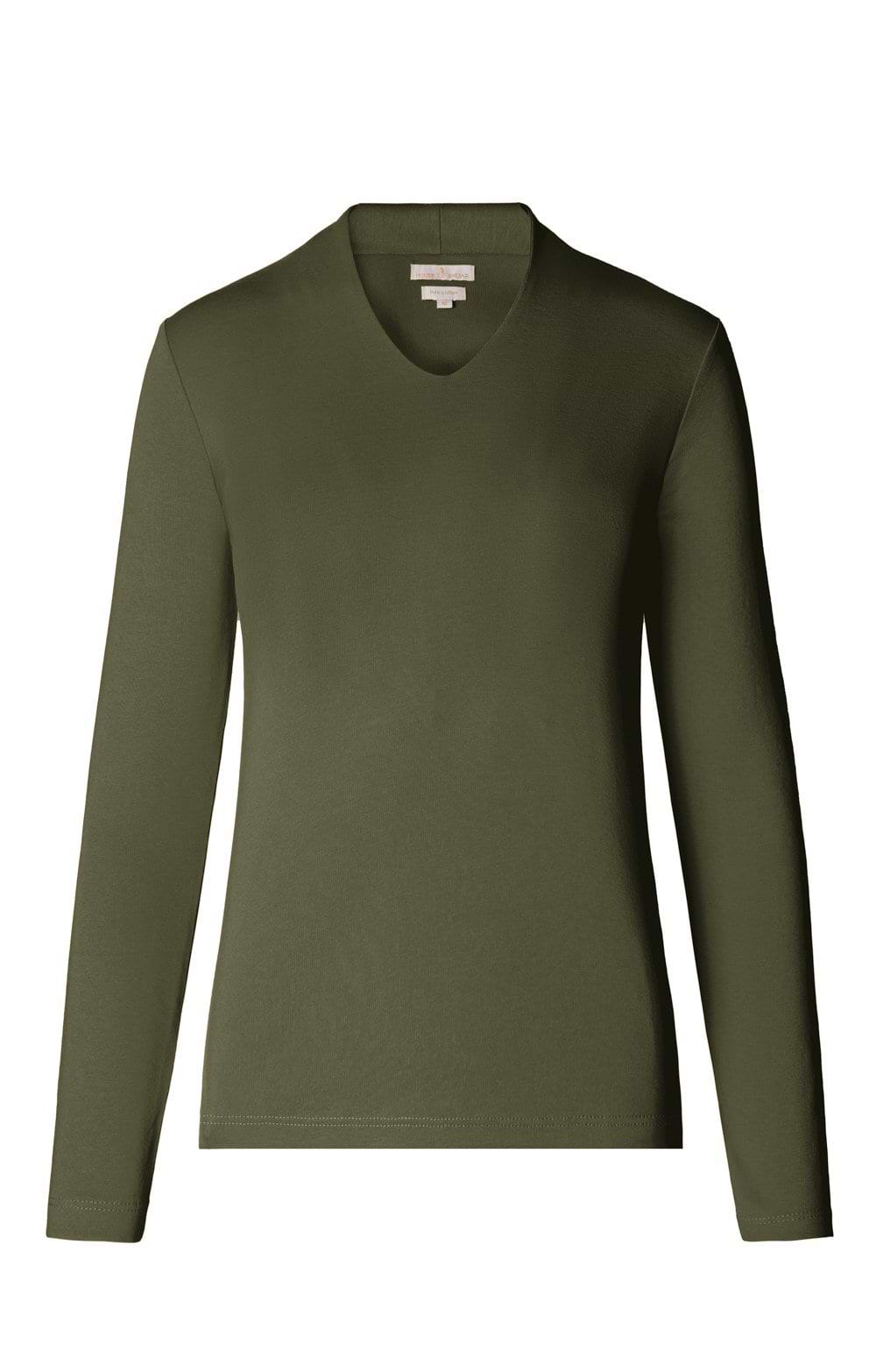Available in a broad spectrum of colours, from muted country classics to strident primary tones, our V-neck top is a highly adaptable quality basic that you will come to depend upon. With a fitted style, long set-in sleeves and a medium-deep V-neck that is perfectly judged for showing off your favourite chains or pendants, this top even has double layering across the front as an additional quality feature.
