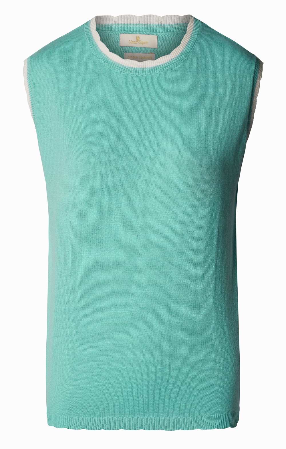 Sleeveless pullover in cotton and cashmere blendScallop detail to the shoulders and neckDesigned by The House of BruarEnjoy wearing as a sleeveless summer top with your favourite wide leg linen trousers and beaded sandals, or team with a crisp white shirt and wide leg flannel trousers as an autumn work look.
