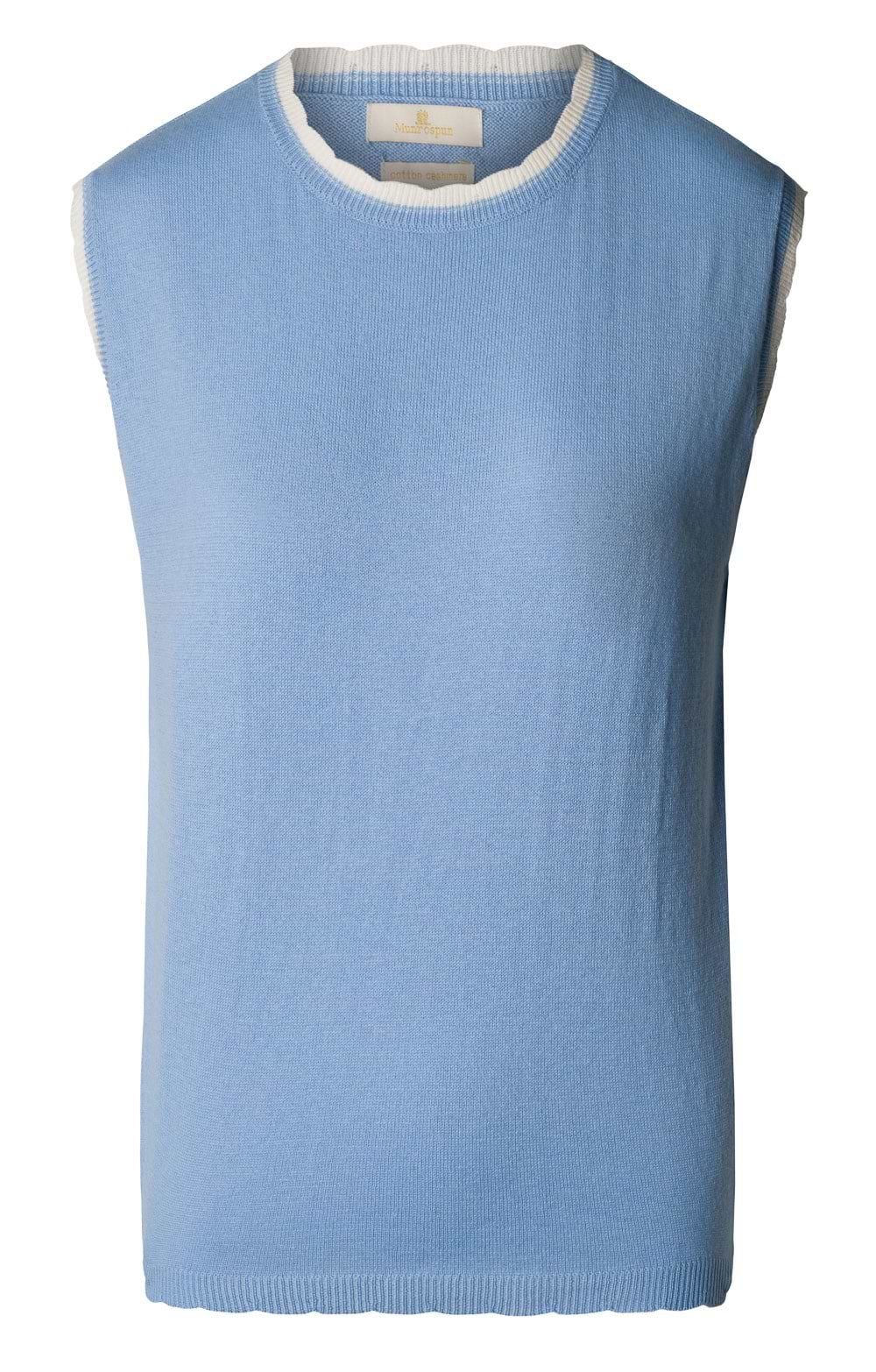 Sleeveless pullover in cotton and cashmere blendScallop detail to the shoulders and neckDesigned by The House of BruarEnjoy wearing as a sleeveless summer top with your favourite wide leg linen trousers and beaded sandals, or team with a crisp white shirt and wide leg flannel trousers as an autumn work look.