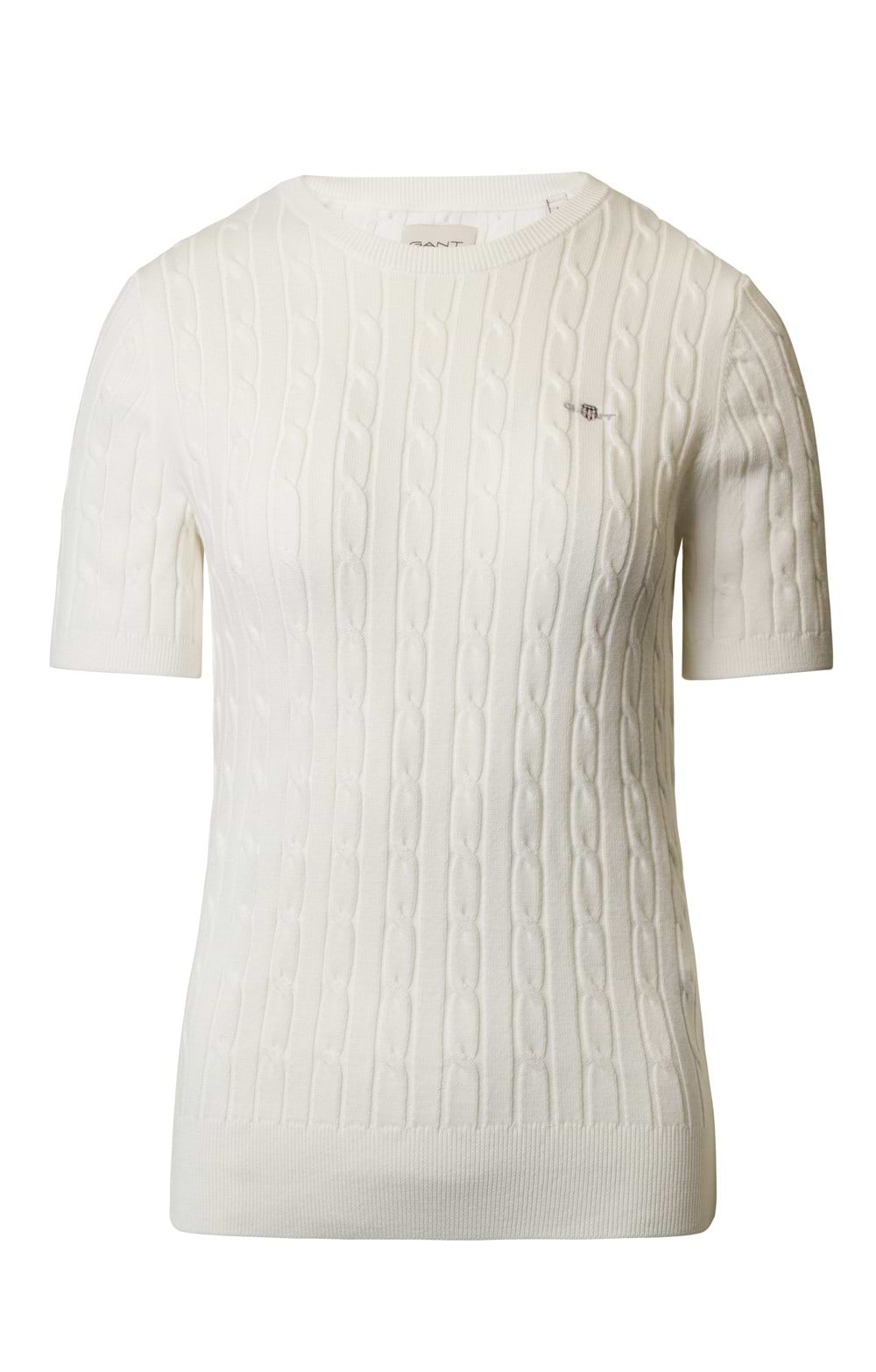 Crafted from a soft cotton blend with extra stretch, the ladies Gant cable knit sweater is designed with short sleeves and a slim fit.