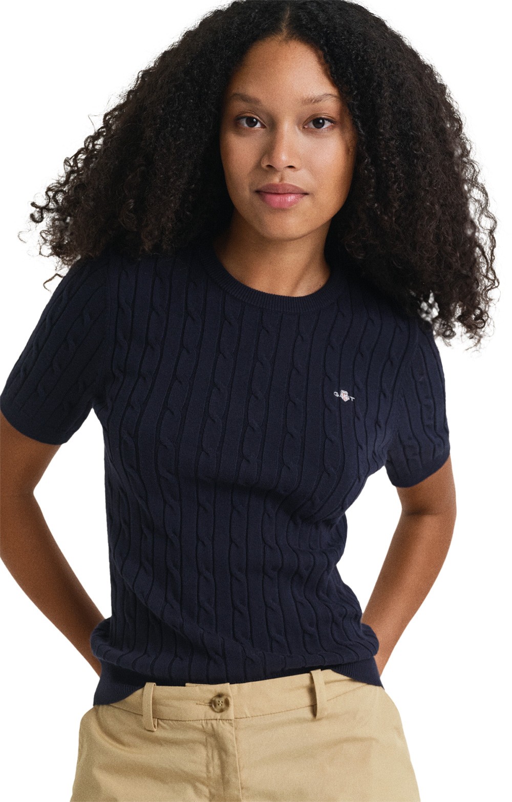 Ladies Gant Cotton Cable Short Sleeved Crew Neck