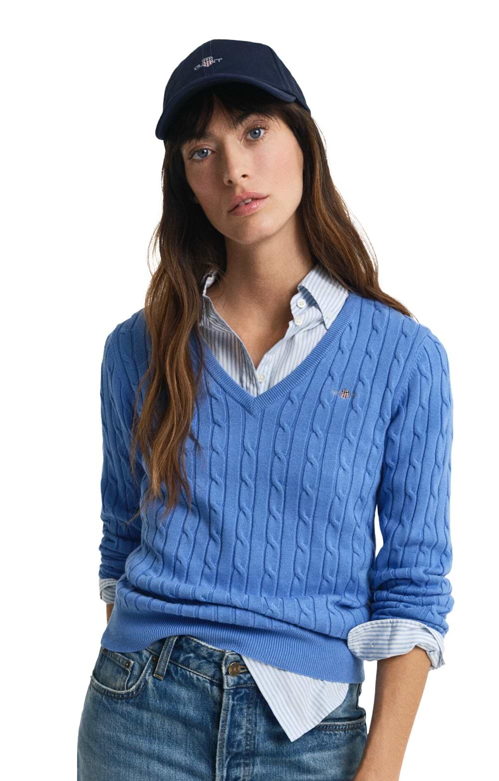 Inspired by American sportswear classics, the ladies Gant slim-fit cable sweater is crafted from a soft cotton-elastane blend, ensuring a flexible yet flattering fit.