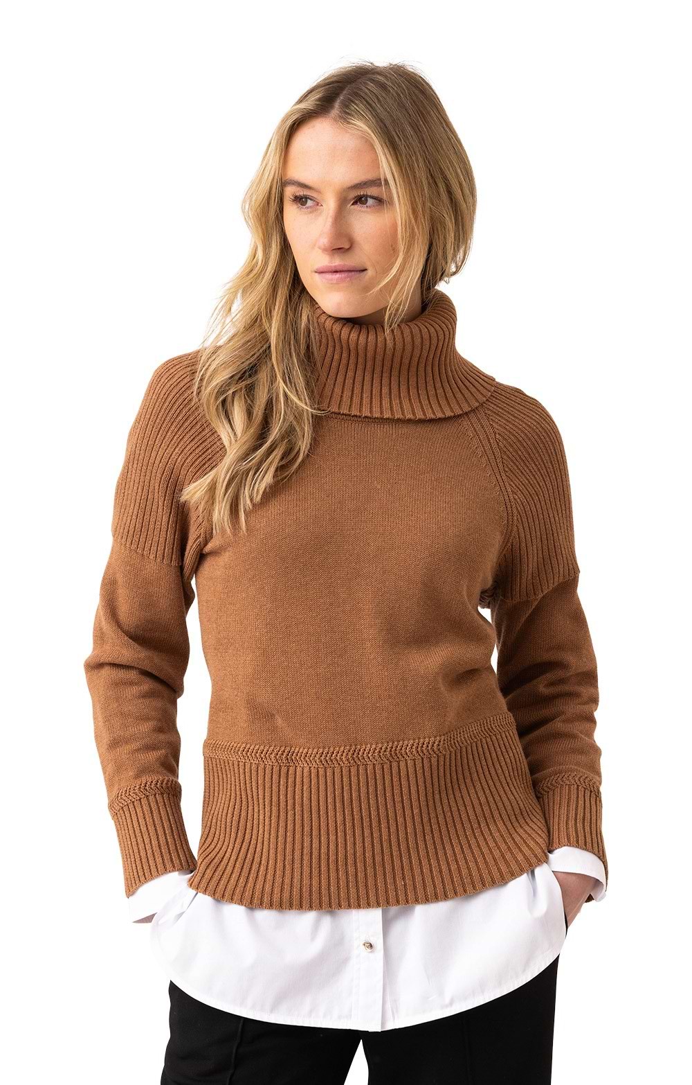 The ladies Marble cotton cowl neck rib sweater is a quintessential piece for the discerning wardrobe.