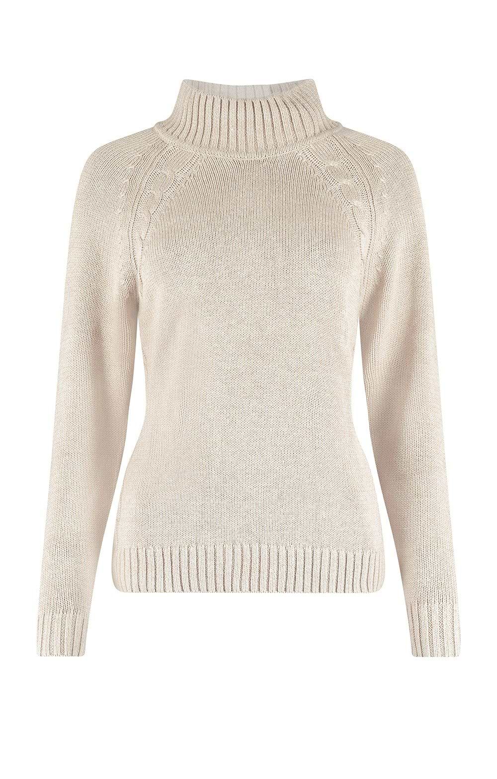 Ladies Cotton Cable Knit Shoulder Turtle Neck Jumper