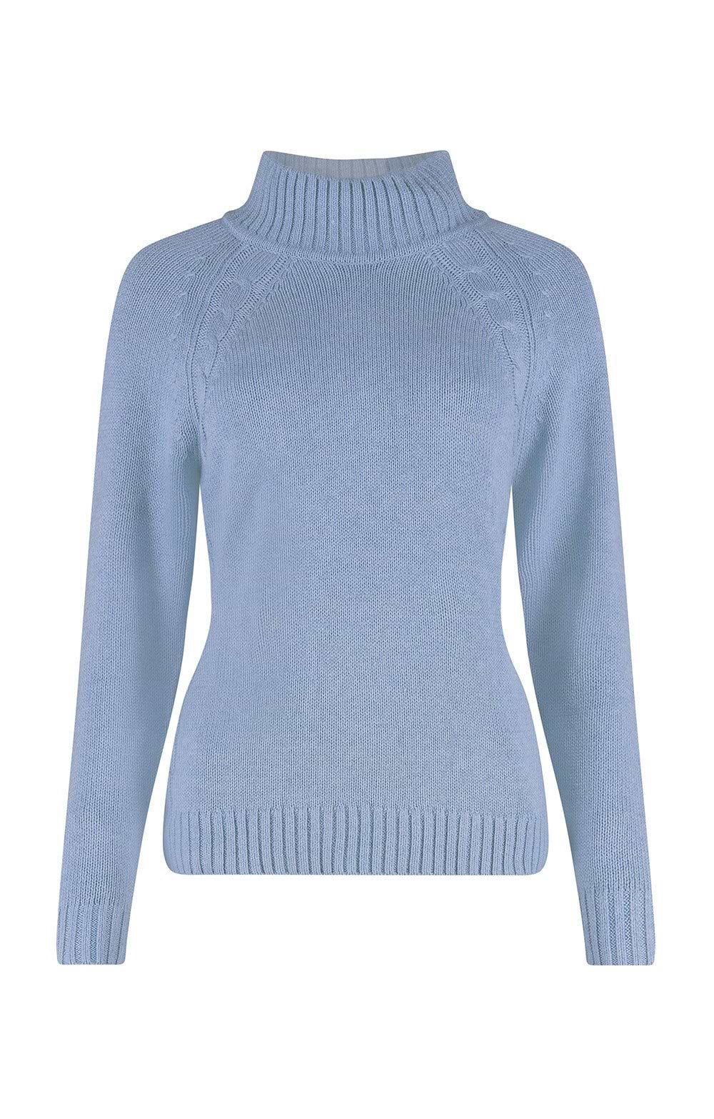 Ladies Cotton Cable Knit Shoulder Turtle Neck Jumper