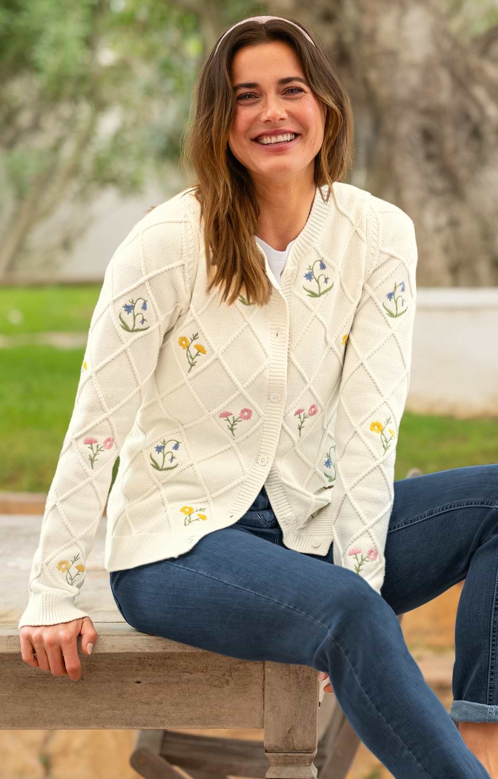 Ladies Cotton Trellis Flower Cardigan