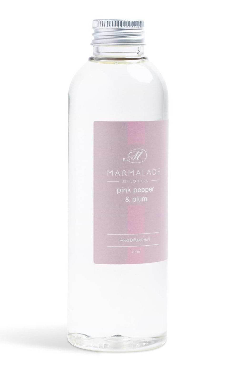 Ingredients: bergamot, rose, violet, lily, jasmine, geranium, vanilla, patchouli and musk.Cashmere and CocoaIngredients: sandalwood, vanilla, cocoa and cinnamon.Grapefruit and PimentoIngredients: grapefruit, pimento, lemon, pepper, tangerine, rosemary, cloves, nutmeg.Pacific Orchid and Sea SaltIngredients: orange, bergamot, white flowers, vanilla, amber and sea salt.Pink Pepper and PlumIngredients: pink peppercorns, black pomegranate, plum and cardamom seed.Pomegranate and PearIngredients: pomegranate, cranberry, pear and apple.Prosecco and JuniperIngredients: prosecco superior, juniper berries, sugared rose petals, winter peony.English Rosemary and PatchouliIngredients: English rosemary, patchouli and cold pressed Italian bergamot.Tuscan Lime and BasilIngredients: mandarin, lime, grapefruit, lemon, spearmint, basil, patchouli, amber, musk and moss.Cassis and White CedarIngredients: cassis and cedar wood.Honeysuckle and ElderflowerIngredients: honeysuckle, jasmine, elderflower, ylang-ylang, orange blossom.White Nectarine and HoneyIngredients: white nectarine, fresh spring flowers, manuka honey.Rhubarb and PeonyIngredients: rhubarb, peony petals, vanilla.Seville Orange and ClementineIngredients: orange and sweet Clementine.