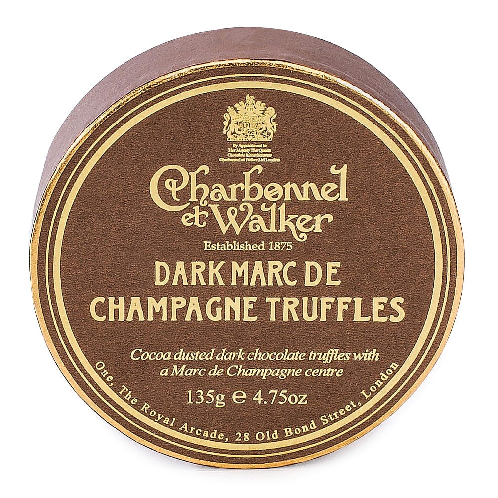 Ingredients: Milk Chocolate (74.6%) (Sugar, Cocoa Butter, Whole Milk Powder, Cocoa Mass, Emulsifier (Soya Lecithin), Natural Vanilla Flavouring), Slightly Salted Butter (Pasteurised Cream (Milk), Lactic Acid Culture, Salt), Marc De Champagne (2.4%), Icing Sugar (Cane Sugar, Anti-Caking Agent (Tri-Calcium Phosphate)), White Rum (1.5%). May also contain Tree Nuts & Gluten.