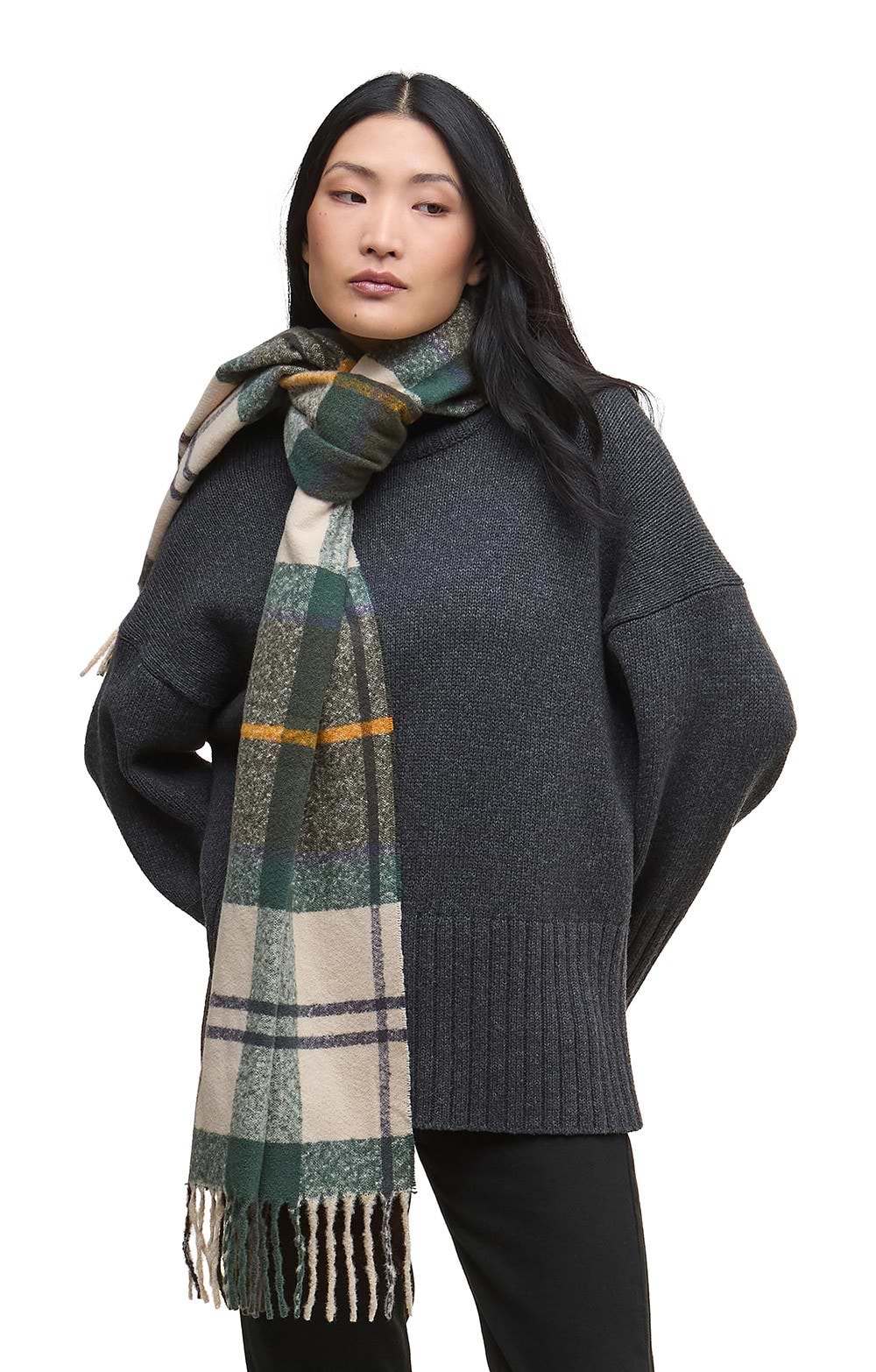 Woven from super-soft boucle yarn for maximum comfortFeatures the iconic Barbour tartan for a heritage lookTassel hem edge adds a charming finishPerfect for pairing with wool coats and leather gloves for weekend country pursuits or styled with smart blazers for a refined commute through town.