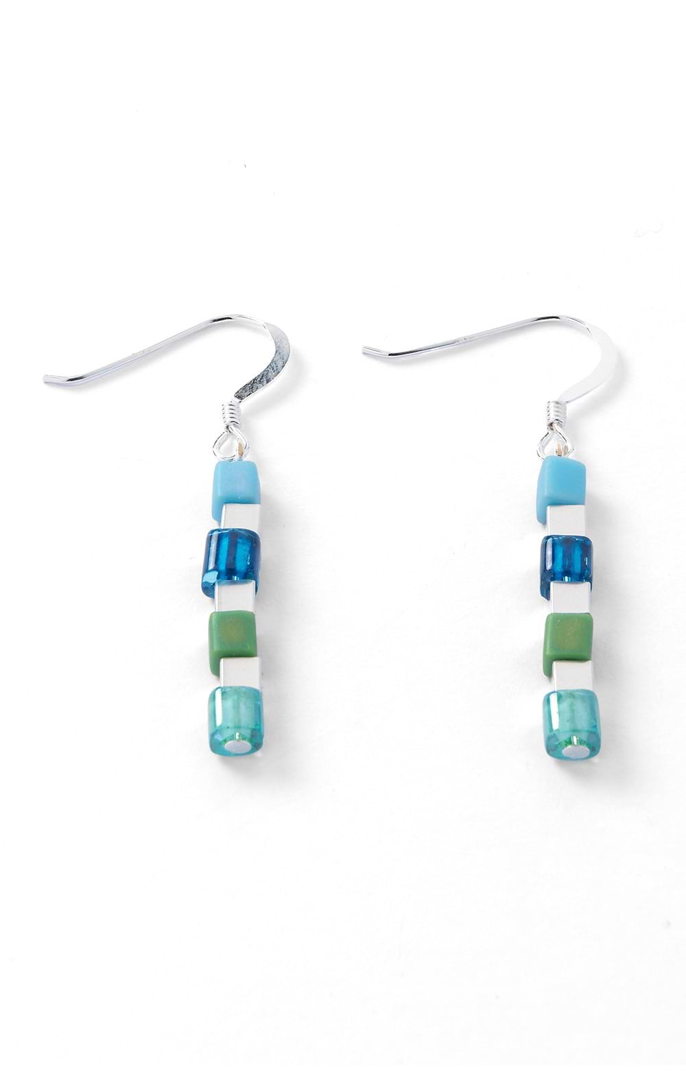 Drop earrings featuring Miyuki glass beadsVariety of colours and translucenciesSterling silver shepherd's hooksIf you love eye-catching colour but also a delicate, pretty look, you'll adore these earrings. They will also make a lovely small gift for someone who appreciates beautiful jewellery.