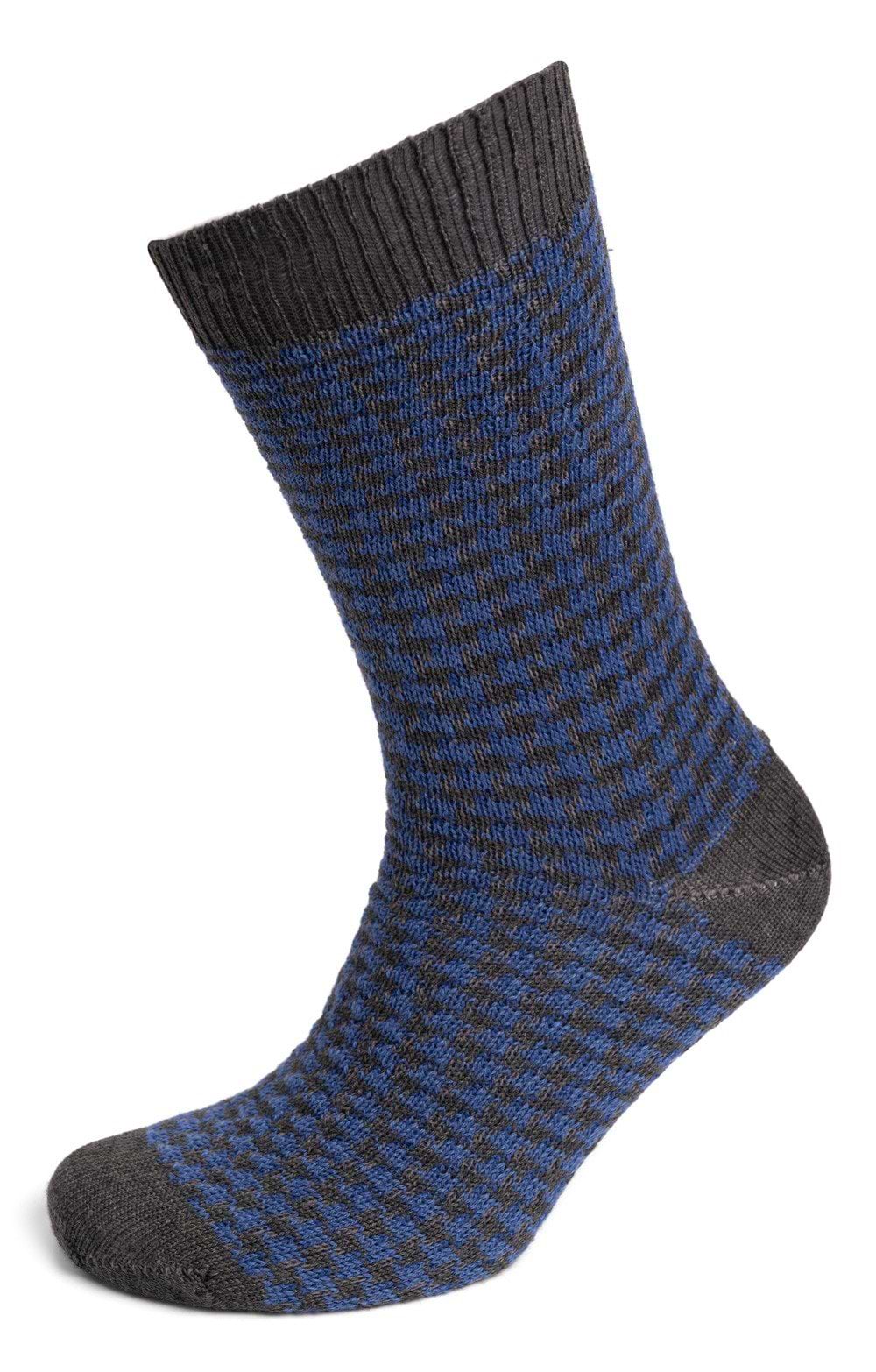 Offered in an eye-catching but classic dogtooth check, these men's House of Cheviot merino wool blend dogtooth socks are also supremely comfortable.