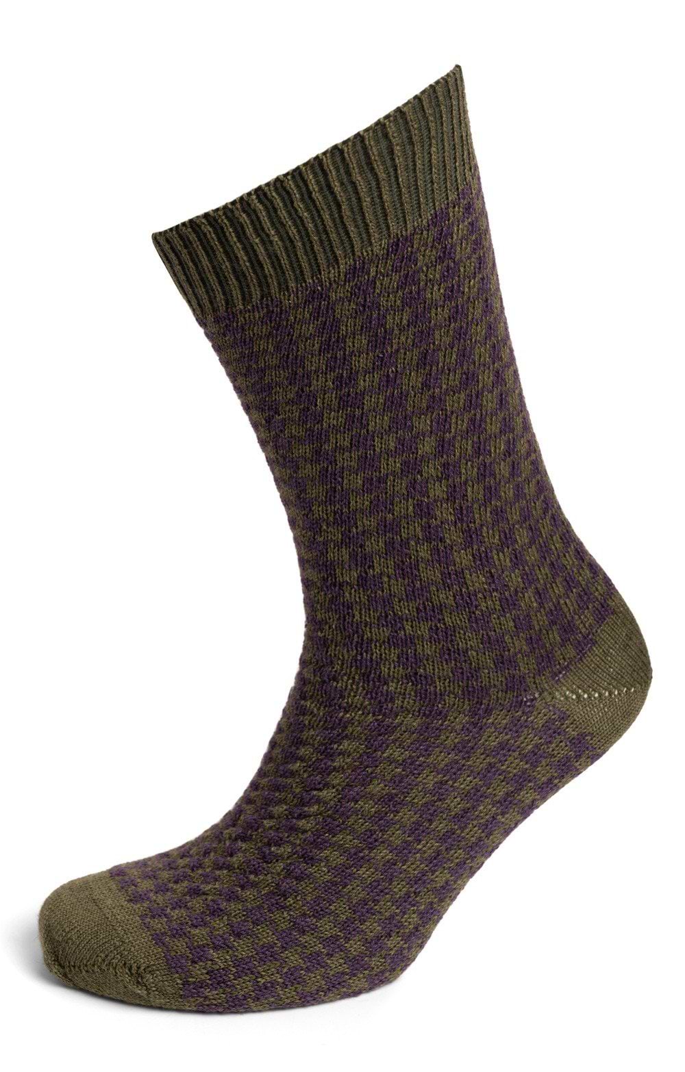 Scottish-made socks in merino-rich yarn.Classic dogtooth check design.Traditional contrast colour to toe, heel and hem.These socks will make a wonderful gift for a friend, especially when presented in a House of Bruar gift box or if your favourite socks have seen better days, why not treat yourself?