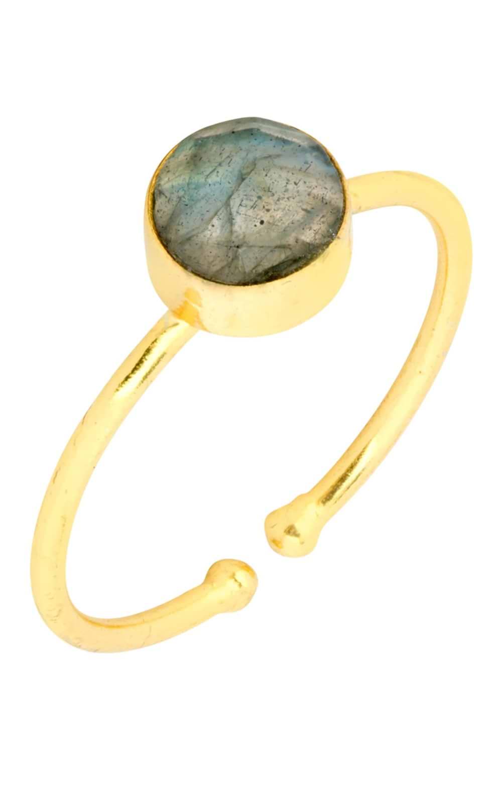 Adjustable open ring with hand-cut genuine gemstoneCrafted in lustrous 22 carat gold-plated brassRound shaped stone for pretty, feminine lookThe Ashiana Dotty round gemstone ring is perfect for those who appreciate subtle elegance and a touch of glamour.