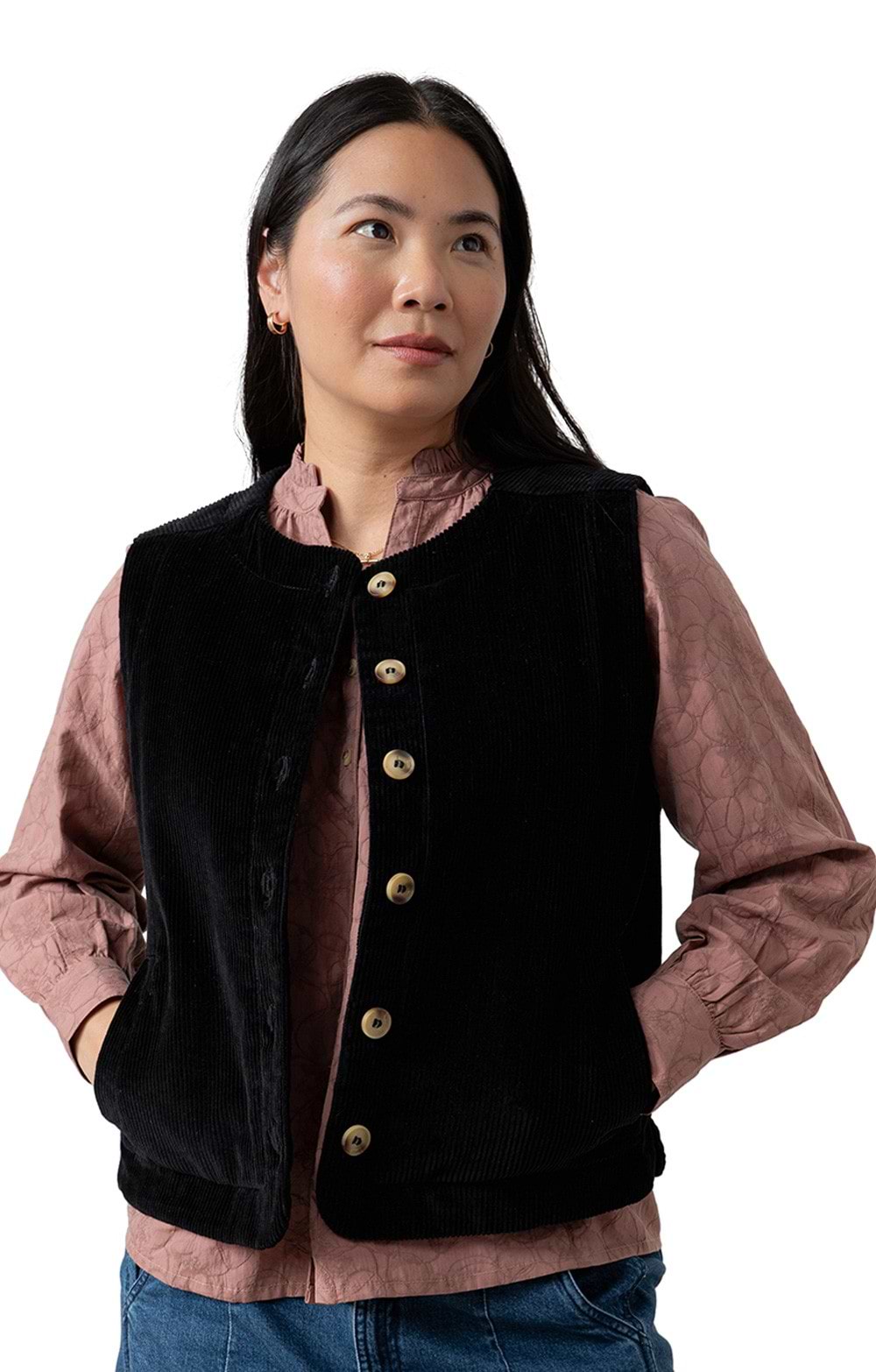 This ladies Lily & Me dusk cord gilet is crafted from beautifully soft jumbo corduroy and is perfect for adding texture to your look.
