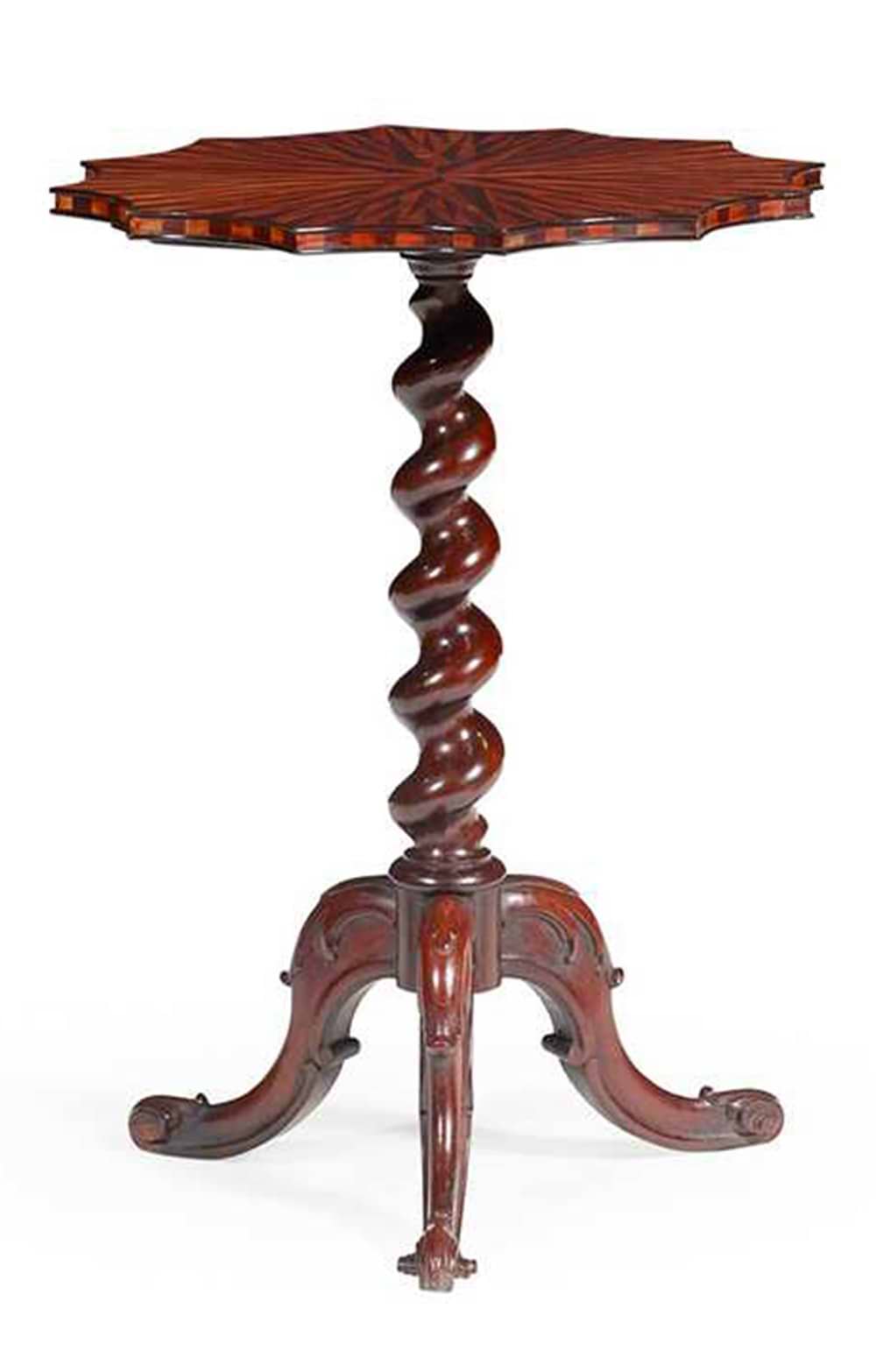 Early Victorian Mahogany, Fruitwood, And Ebonised Marquetry Tripod Tablemid, 19th Century
