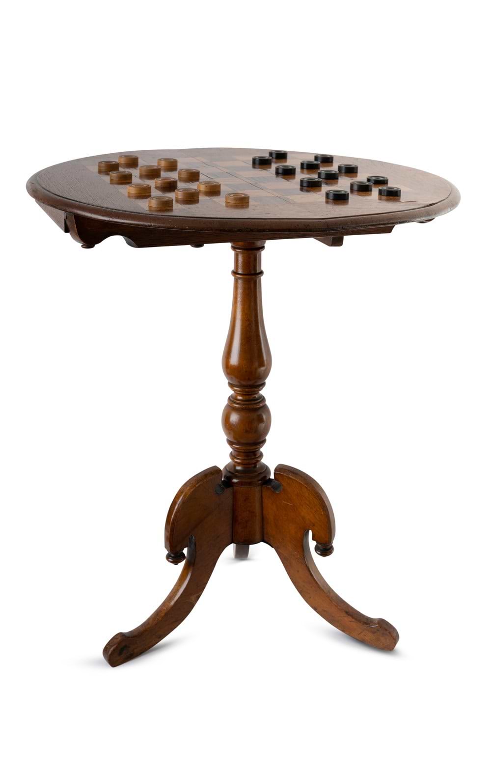 Early Victorian Walnut Rosewood and Satinwood Tripod Games Table, Mid 19th Century