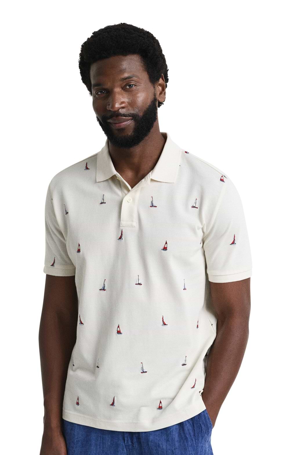 Crafted from 100% cotton, the men's Gant embroidered graphic polo features an all-over boat graphic embroidery, adding a nautical touch to your ensemble.