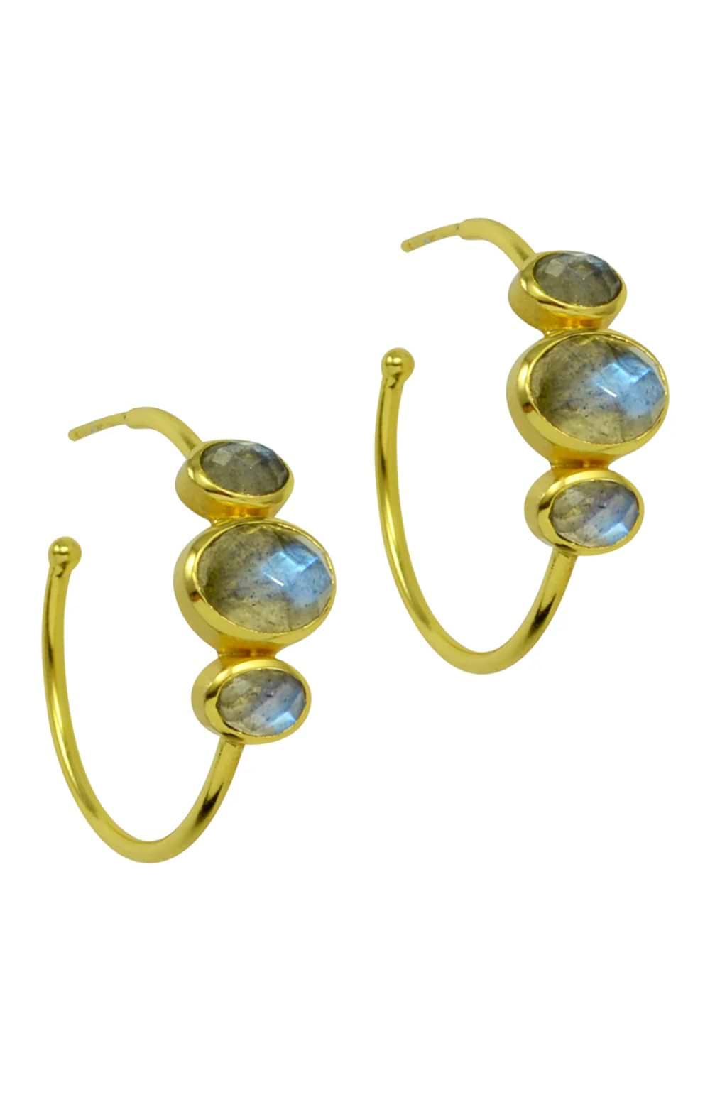 Jafa 18k Gold Plate and Labradorite Three Stone Hoop Earrings