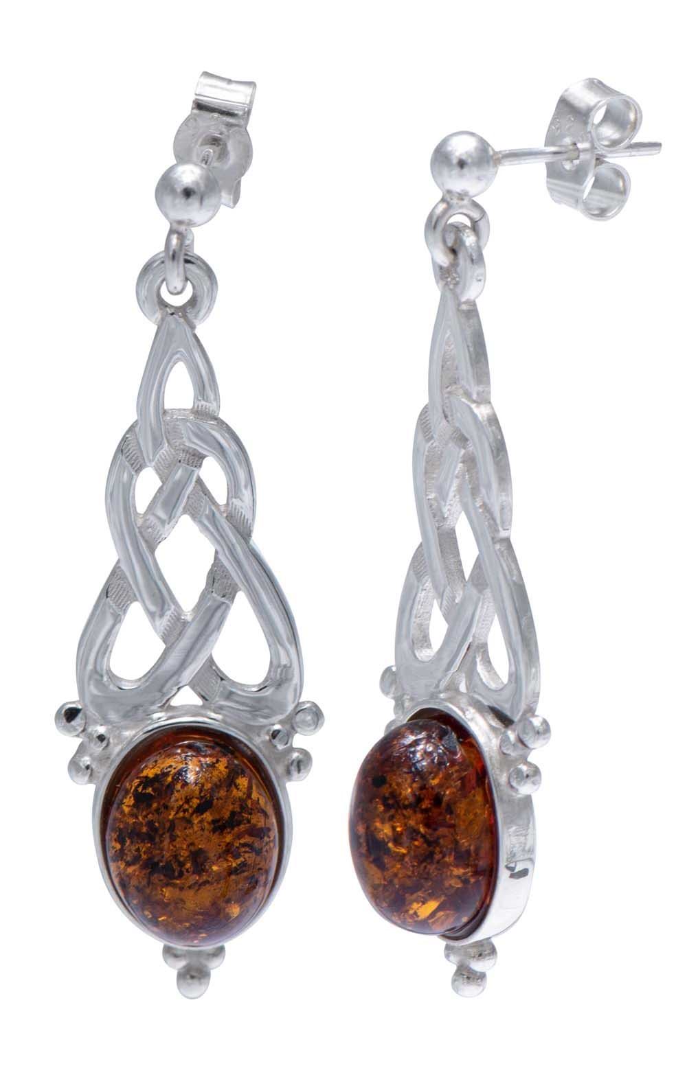 Ladies Celtic Amber Drop Earrings
