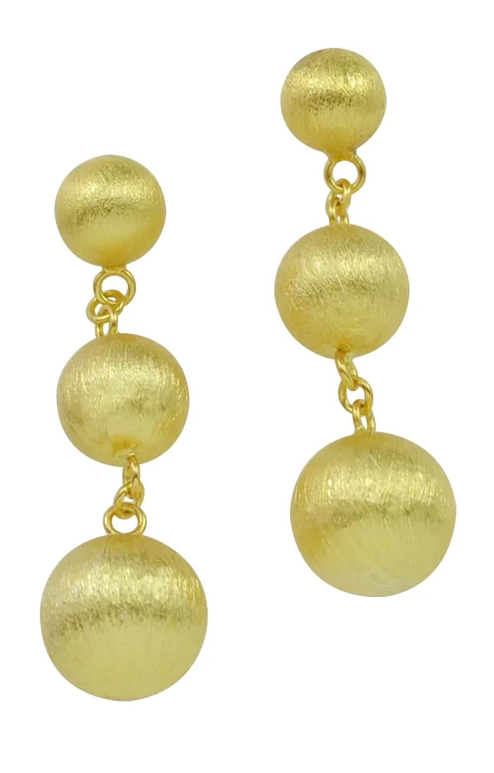 Luana 18k Gold Plate Post Triple Ball Drop Earrings