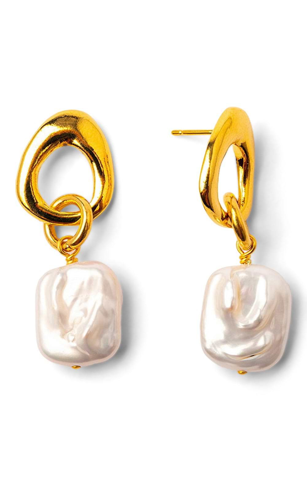 Ladies Gold Plated Drop Earrings with Square Pearls