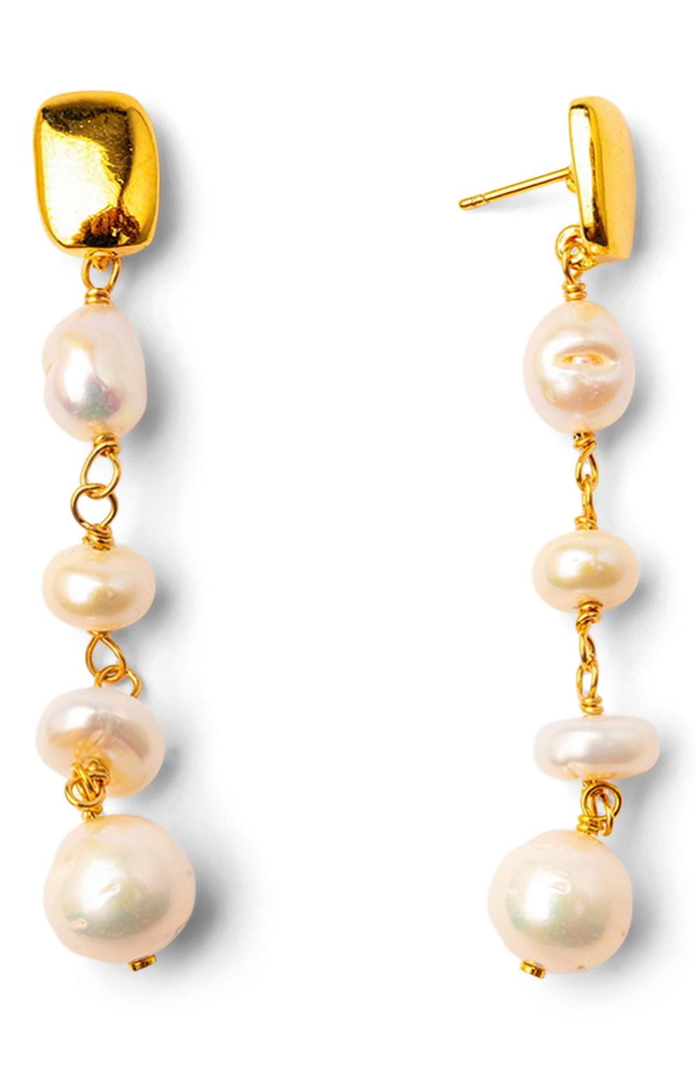 Ladies Gold Plated Square Studs with Small Pearl Drop