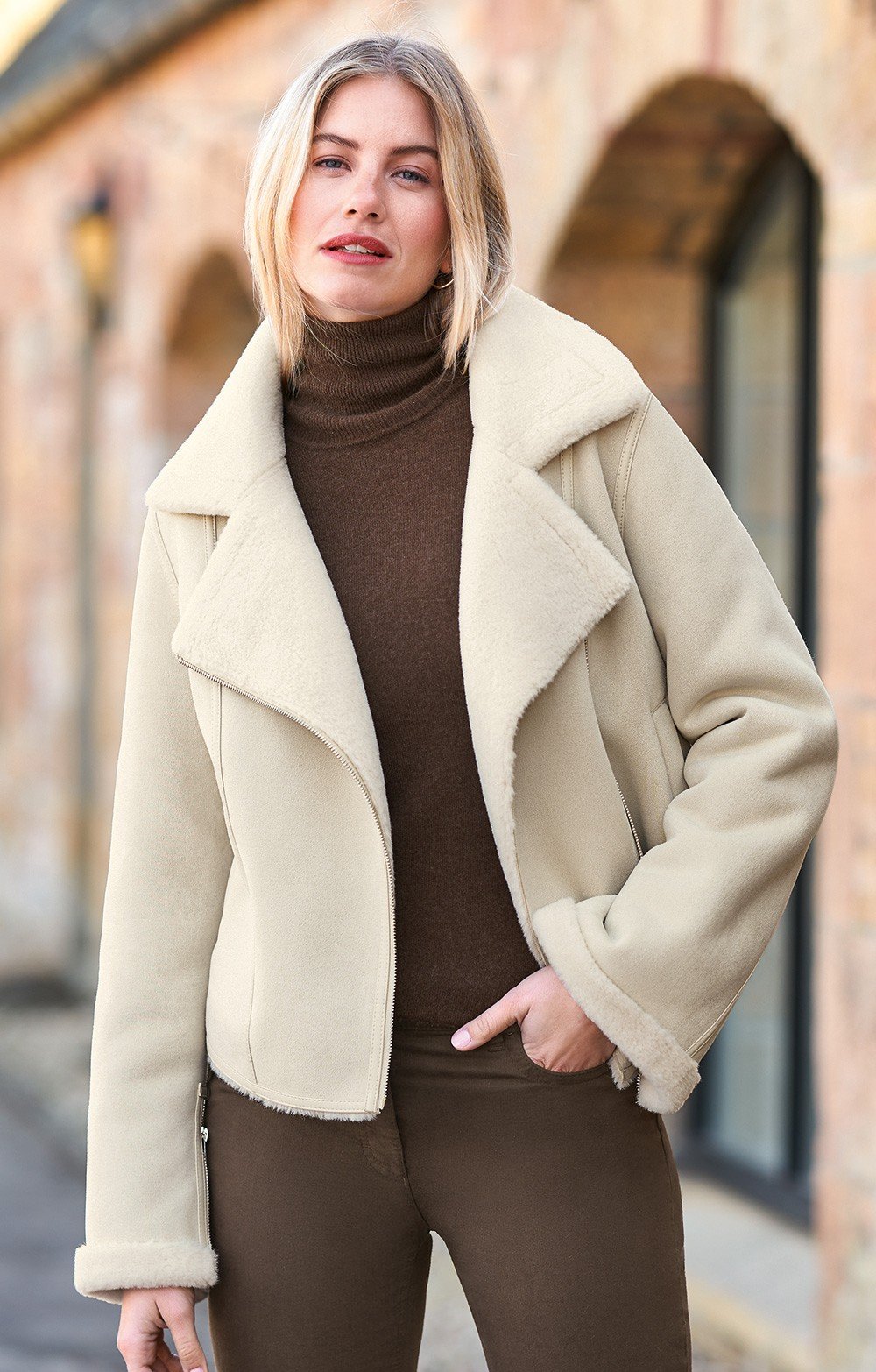 Ladies Rino & Pelle Faux Sheepskin Biker Jacket