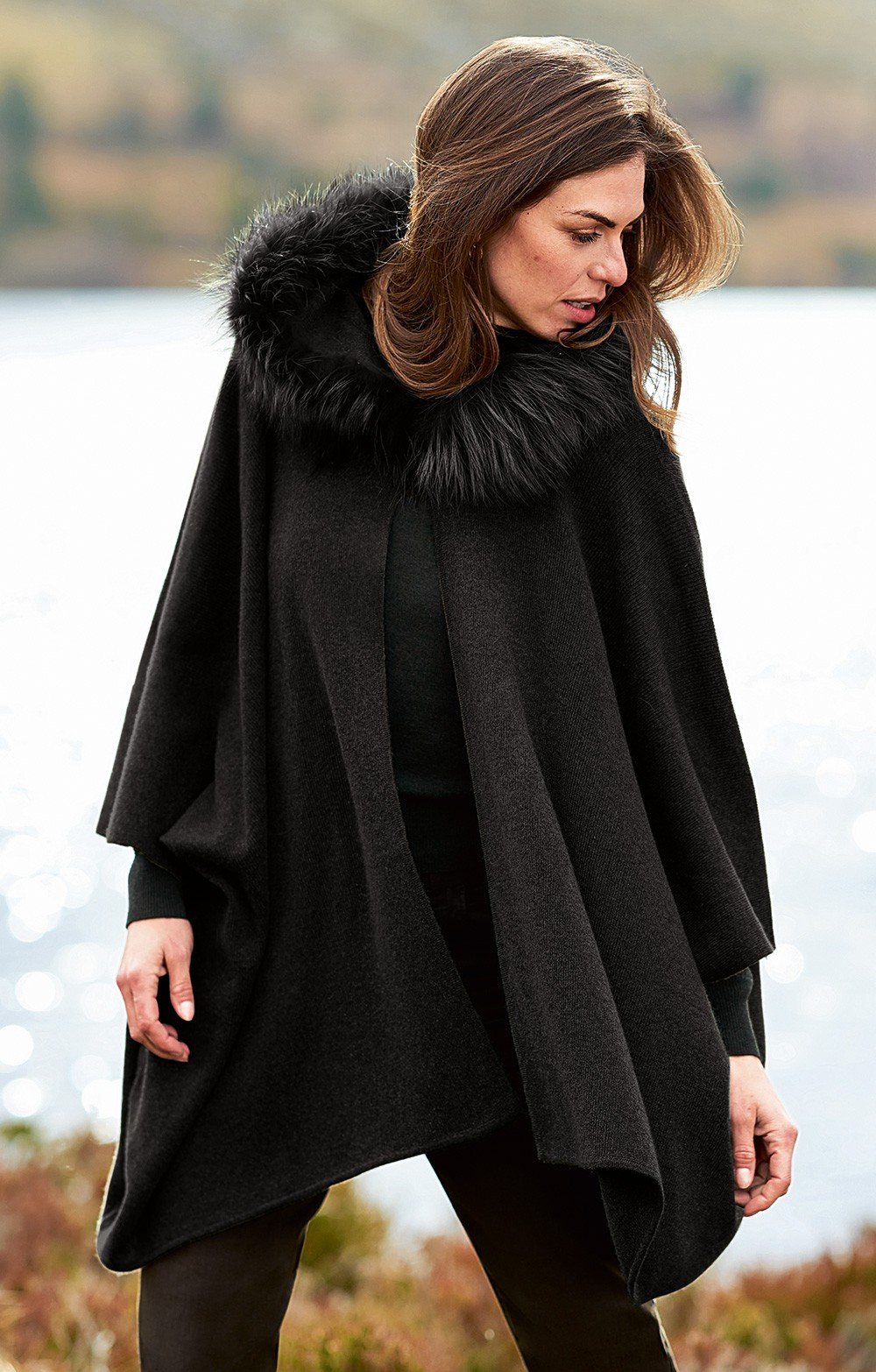 Ladies Fox Fur & Cashmere Hooded Cape