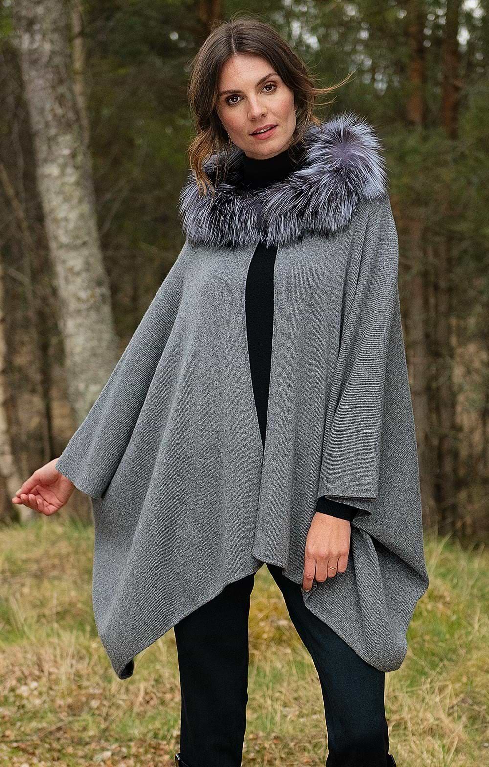 Ladies Fox Fur & Cashmere Hooded Cape