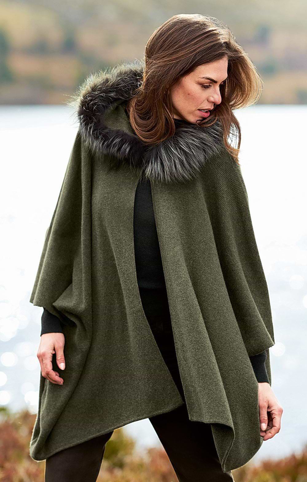 Ladies Fox Fur & Cashmere Hooded Cape