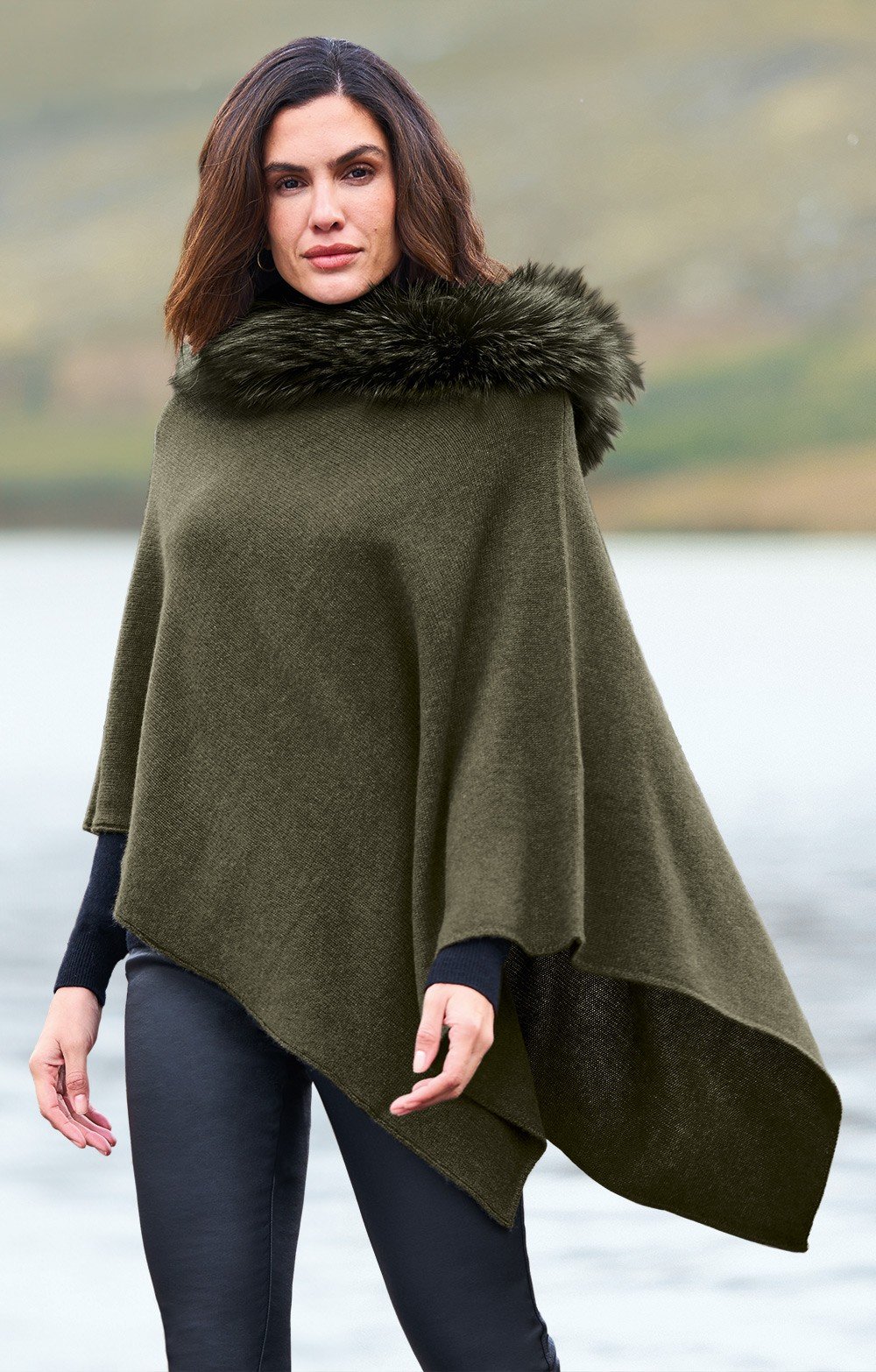 Delicately crafted for luxurious comfort, the ladies fox fur and cashmere poncho brings a touch of sophistication to any outfit.