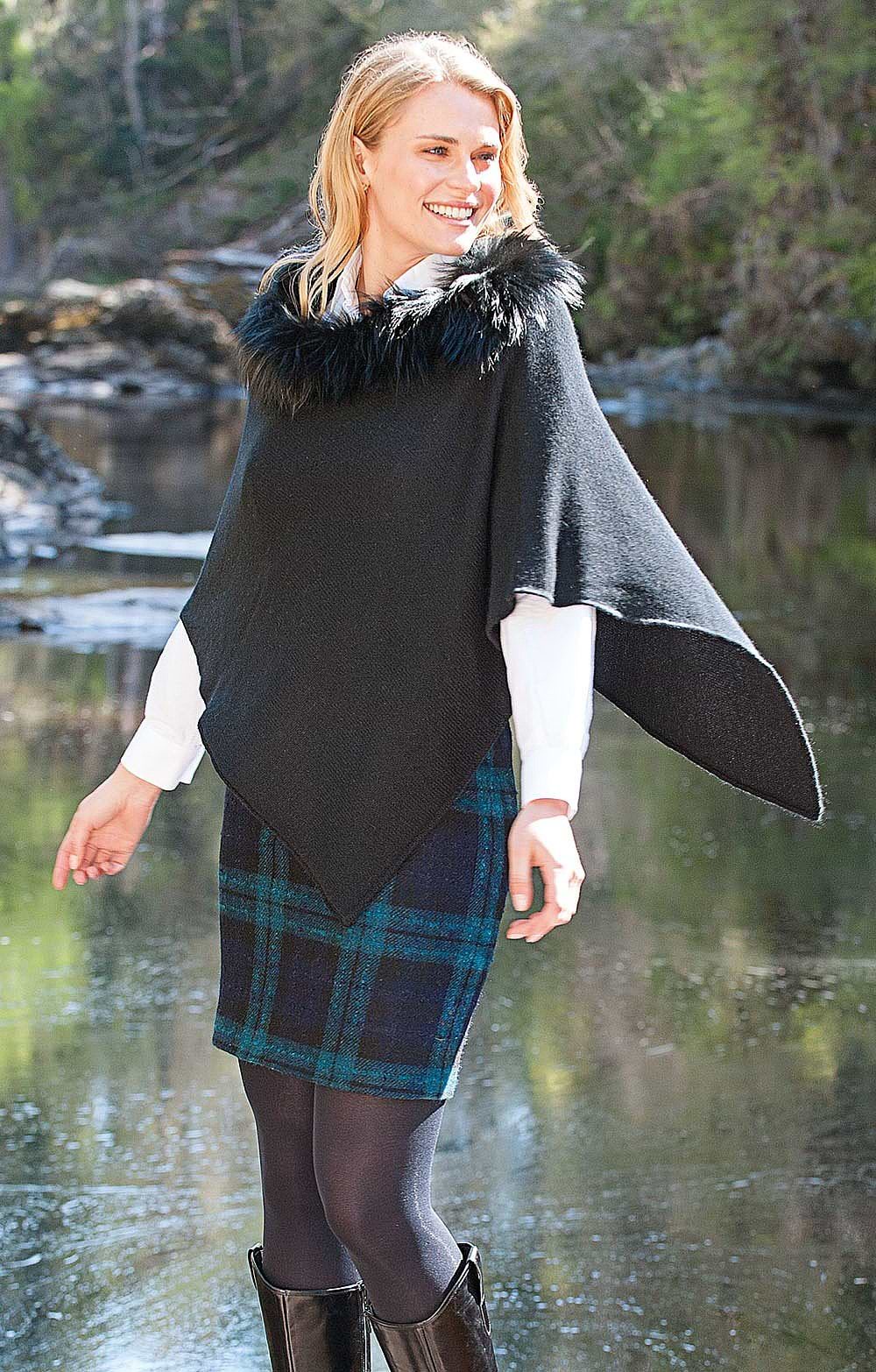 Delicately crafted for luxurious comfort, the ladies fox fur and cashmere poncho brings a touch of sophistication to any outfit.