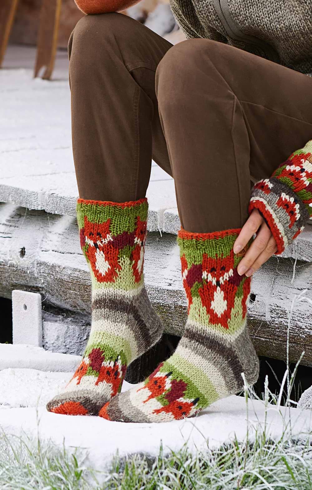 Finely hand-knitted, these ladies Pachamama pure wool fox sofa socks are perfect for evenings in relaxing with your favourite television programme.
