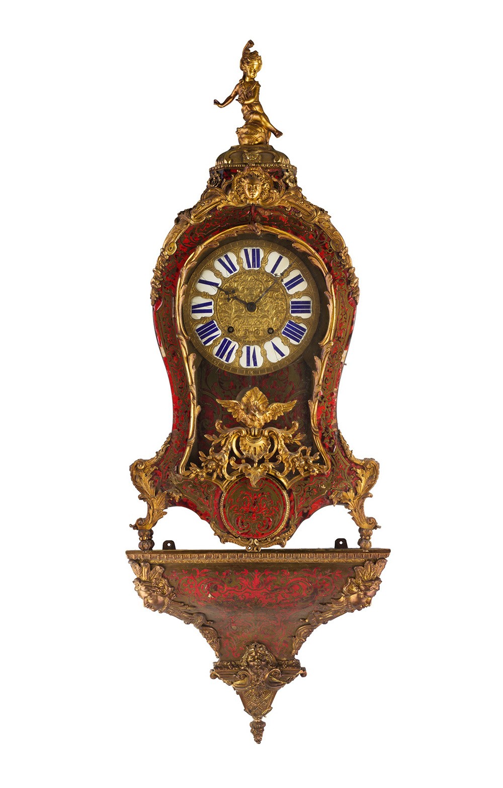 French Red Tortoiseshell And Boulle Marquetry Bracket Clock And Bracket, 19th Century