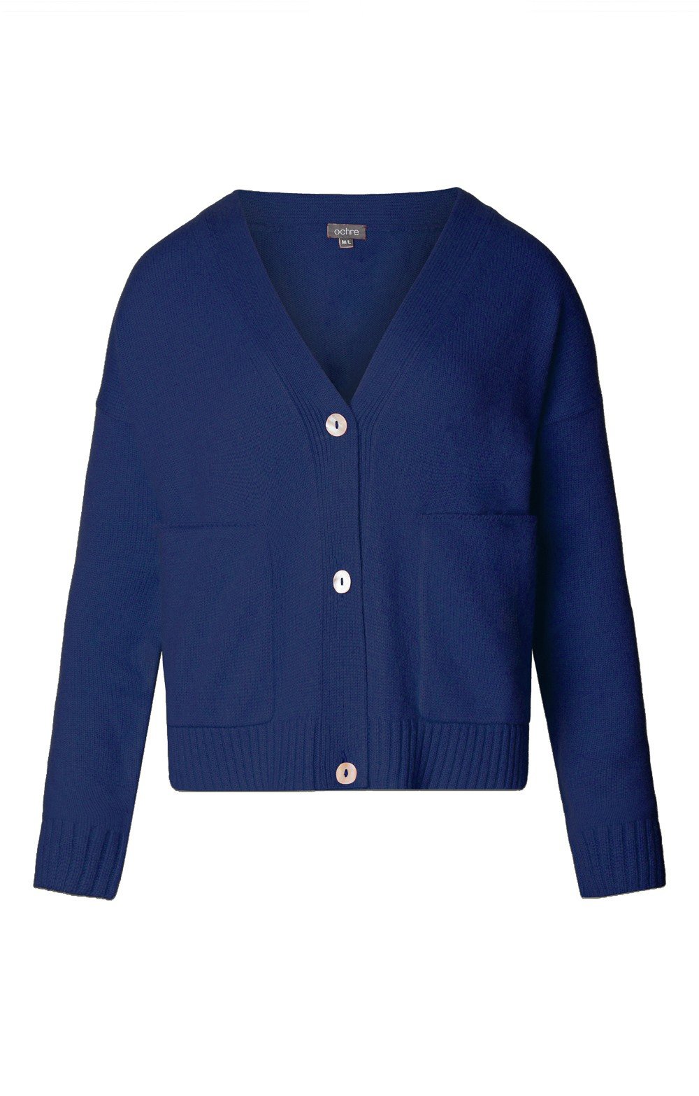 Indulge in the understated elegance of the ladies Gab pocket cardigan, crafted from a luxurious blend of lambswool and cashmere.