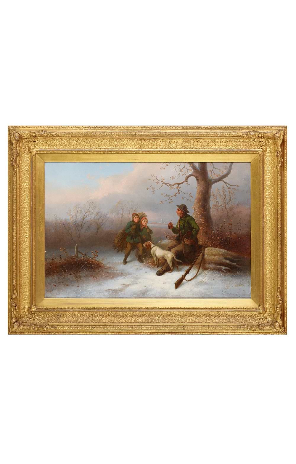 Gathering Firewood in the Snow By Alexis De Leeuw, (Belgian 1822 - 1900)