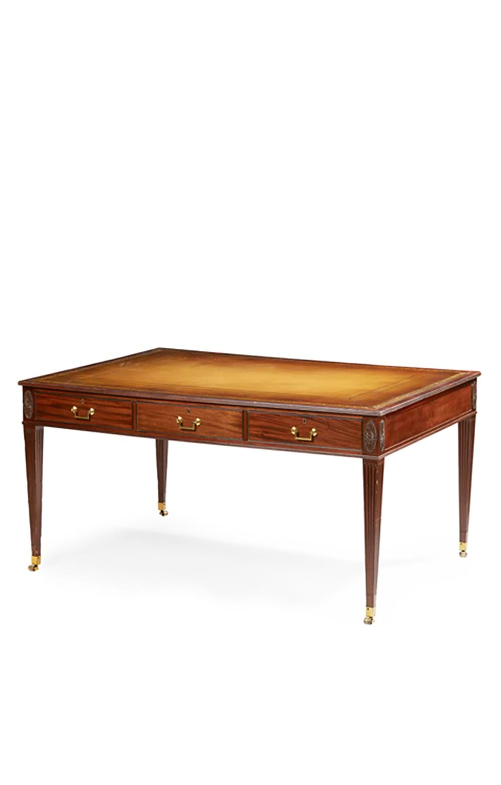 GEORGE III STYLE MAHOGANY AND EBONISED WRITING TABLE, 19th Century