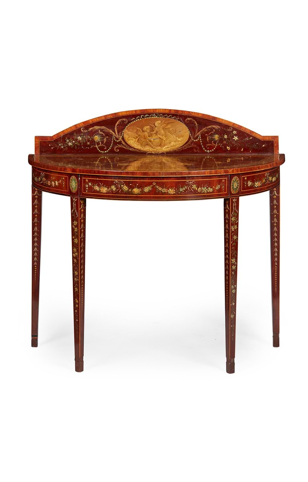 Georgian Painted Mahogany Demilune Side Table, Late 18th Century With Later Decoration