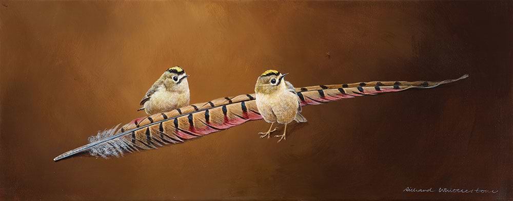 Goldcrest and Pheasant Feather by Richard Whittlestone