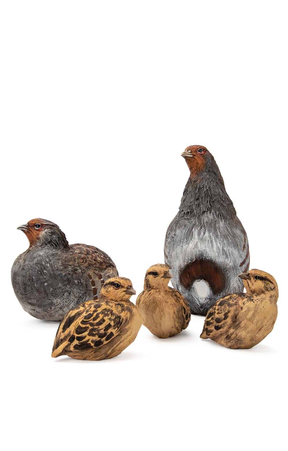 Grey Partridge Family (Cock, Hen and 3 Chicks) by Karen Fawcett