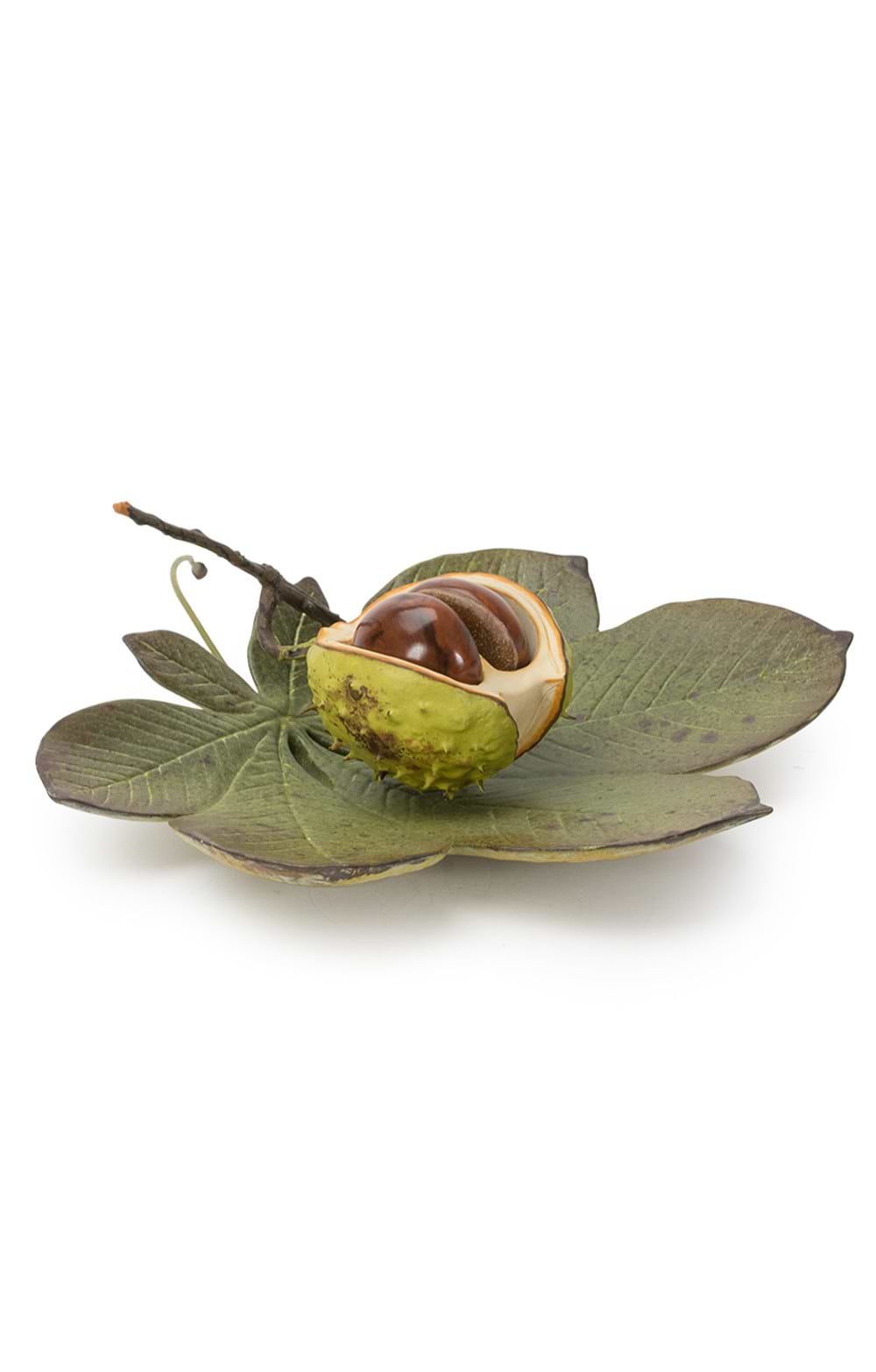 Half Shell and Double Removable Nuts on Large Leaf by Penkridge Ceramics