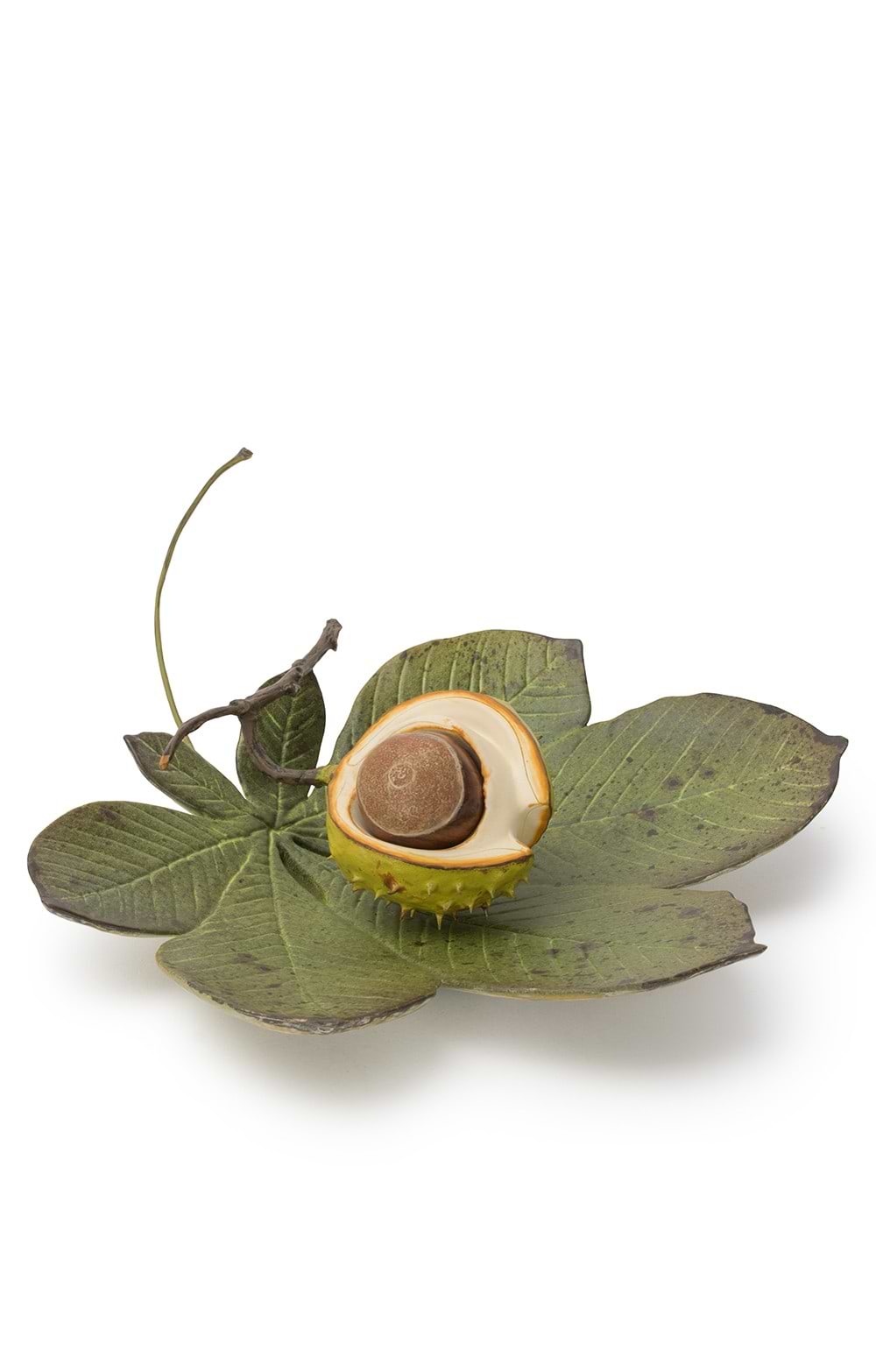 Half Shell and Single Removable Nut on Large Leaf by Penkridge Ceramics
