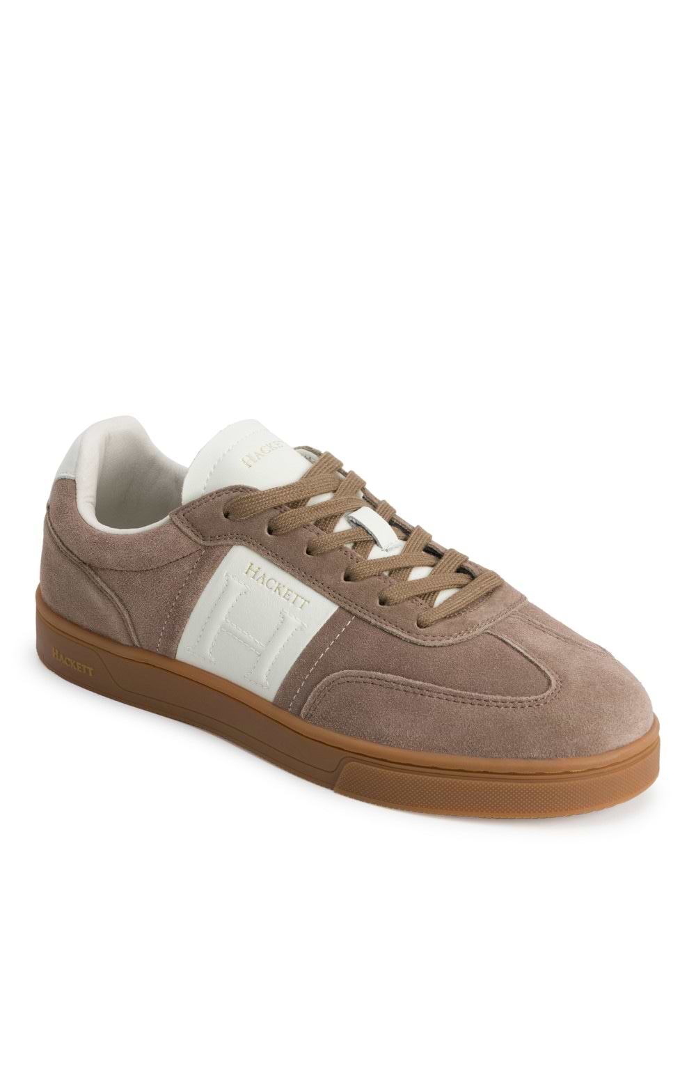 Skater-style trainers in genuine suedeFlat contrast soleContrast stripe and tongueHackett branding to side, tongue and backWear with slim jeans and a polo shirt for off-duty flair, or present as a stylish gift for men who value understated luxury.