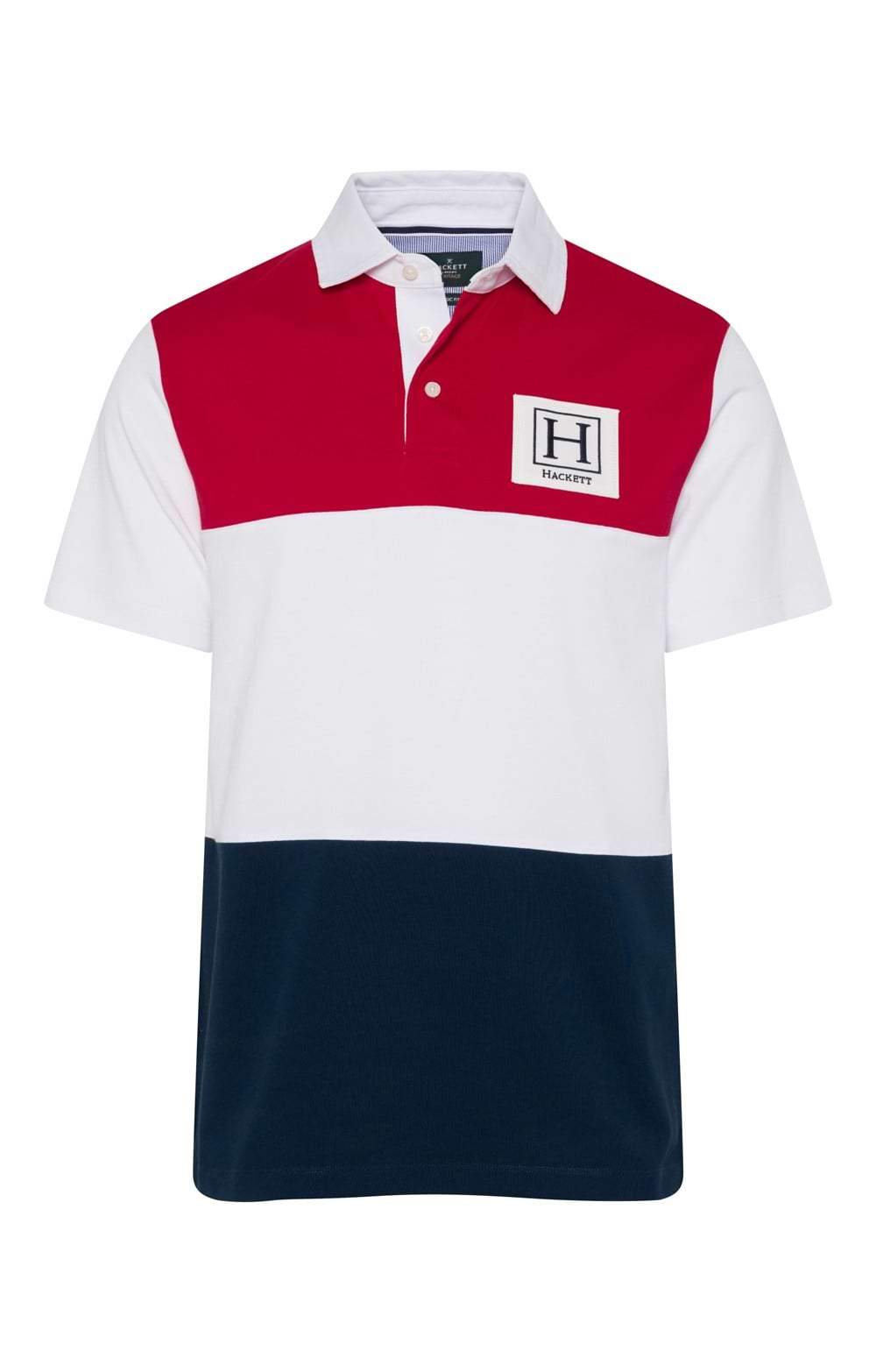 This Hackett London rugby short sleeve polo presents blends archive H branding with a contemporary colour block style.