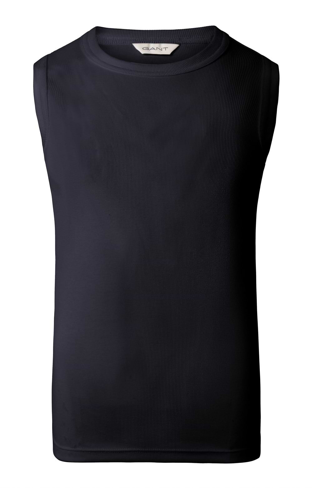 The ribbed structure adds texture, while the high crew neck provides a modern touch. A subtle Gant logo is embroidered at the hem, adding a signature finish. This versatile piece can be layered under an overshirt or paired with jeans and sneakers for a cool, casual look. Whether you're heading to a yoga class or meeting friends for coffee, this tank top fits the occasion.