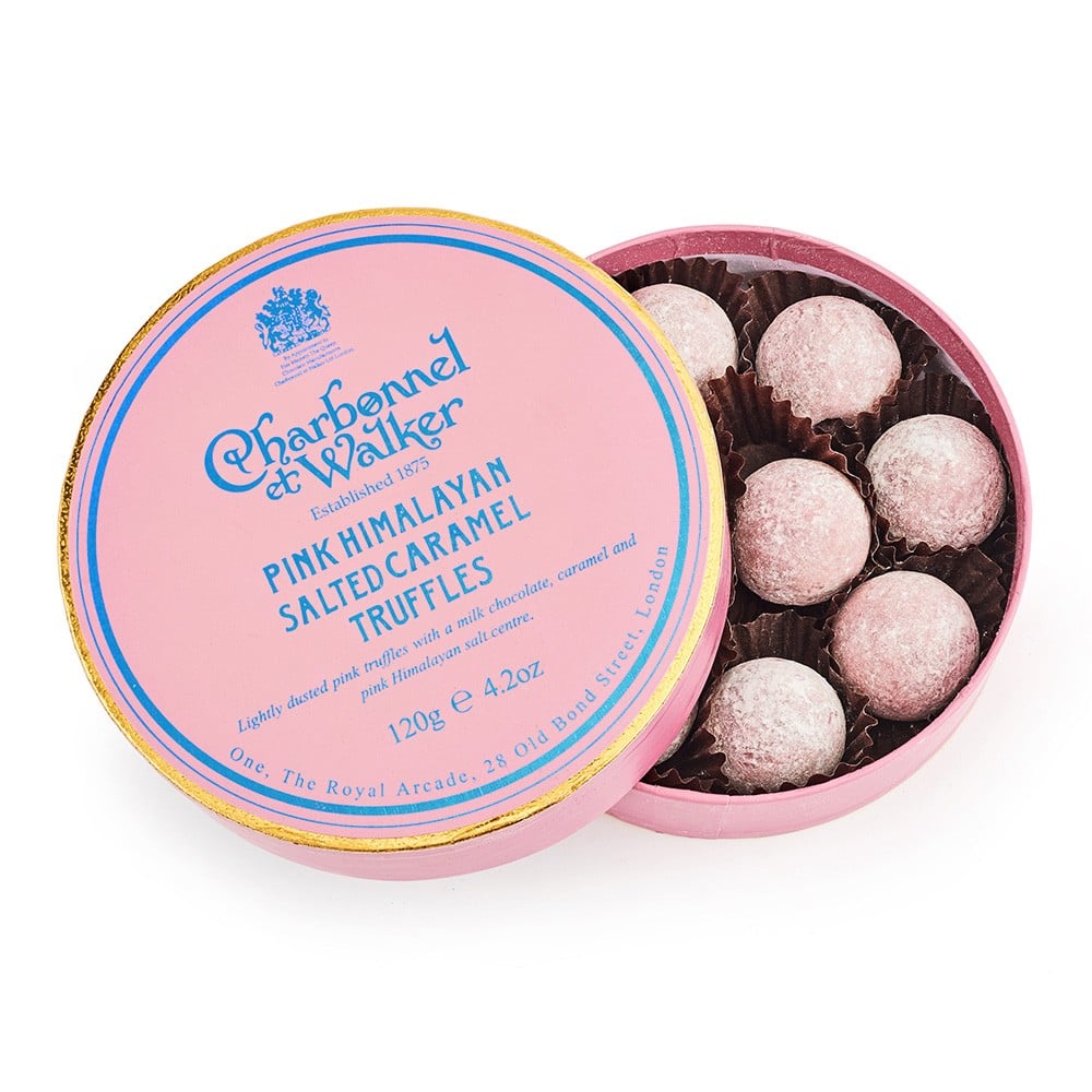 Milk Chocolate (49%) (sugar, cocoa Butter, whole Milk powder, cocoa mass, emulsifier (soya lecithin), natural vanilla flavouring), caramel (32%) (glucose syrup, sweetened condensed skimmed Milk, palm kernel oil, palm oil, emulsifier (mono and diglycerides of fatty acids), white chocolate (sugar, cocoa Butter, whole Milk powder, emulsifier (soya lecithin), natural vanilla flavouring), icing sugar, pink Himalayan salt (0.6%), colour (beetroot red). Milk chocolate contains cocoa solids 33.5% minimum and Milk solids 20.5% minimum.