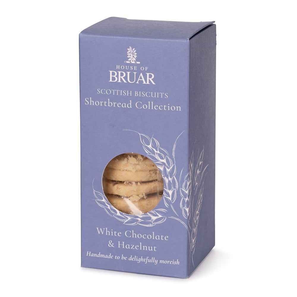 Wheat flour (with calcium carbonate, iron, niacin, thiamin), Butter (milk, salt), Sugar, White Chocolate chips (6%)(sugar, cocoa butter, whole milkpowder, whey powder (milk), lactose (milk), emulsifier (soya lecithin), vanilla extract), Hazelnuts (6%), Cornflour. May also contain Nuts and Sesame seeds
