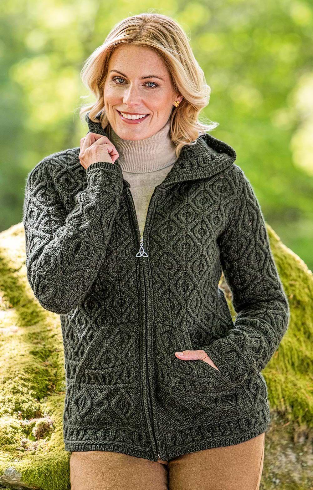 Crafted in Ireland, this ladies merino hooded zip coat is the ideal blend of warmth, practicality and classic charm, making it a must-have for chilly days.