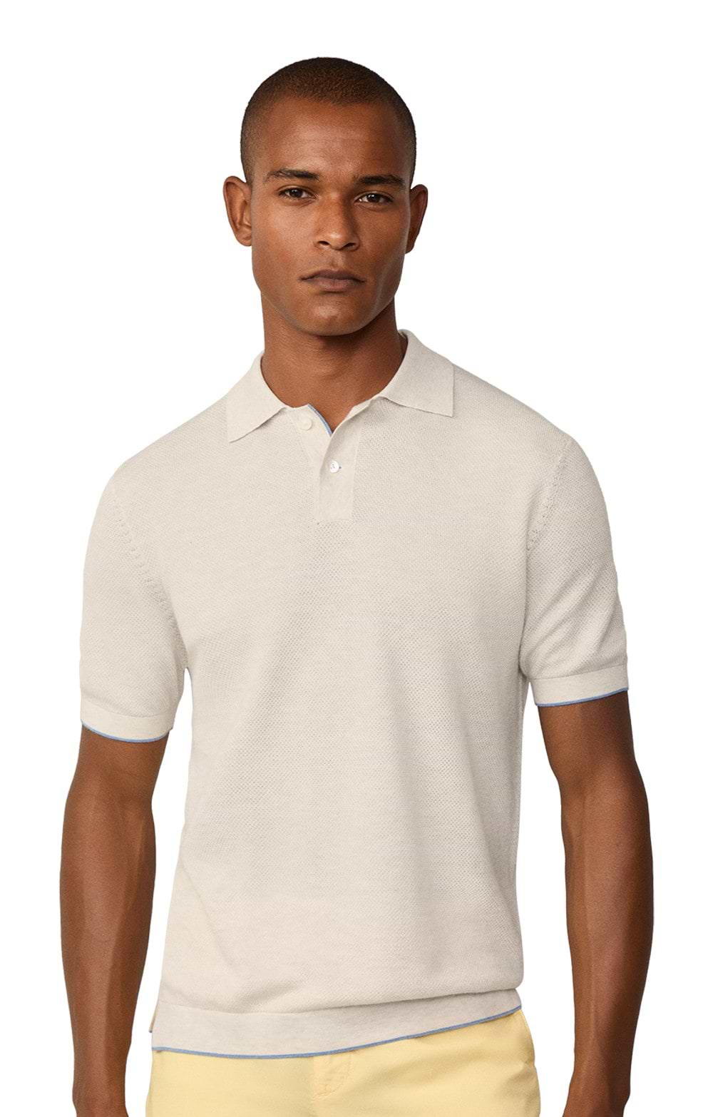 A cool mix of piqu polo and knitted top, the men's Hackett knit stitch short sleeved polo T-shirt gives a sophisticated semi-formal summer look.