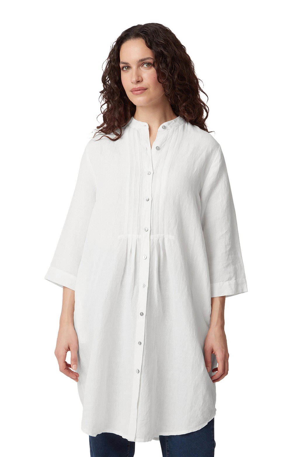 Crafted from a soft linen-cotton blend, its lightweight and breathable fabric keeps you cool throughout the day. A flattering relaxed shape is complemented by a mandarin collar and decorative pin-tuck detailing along the button-through fastening. Thoughtful additions like side pockets enhance practicality, while three-quarter length sleeves add a touch of refinement. Whether you're attending a casual brunch or exploring a new city, this tunic will adapt with ease.